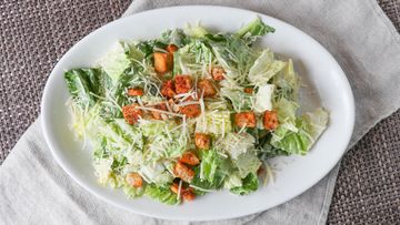 crispy lettuce, shredded parm & croutons tossed in Caesar dressing. Add chicken or salmon 😋