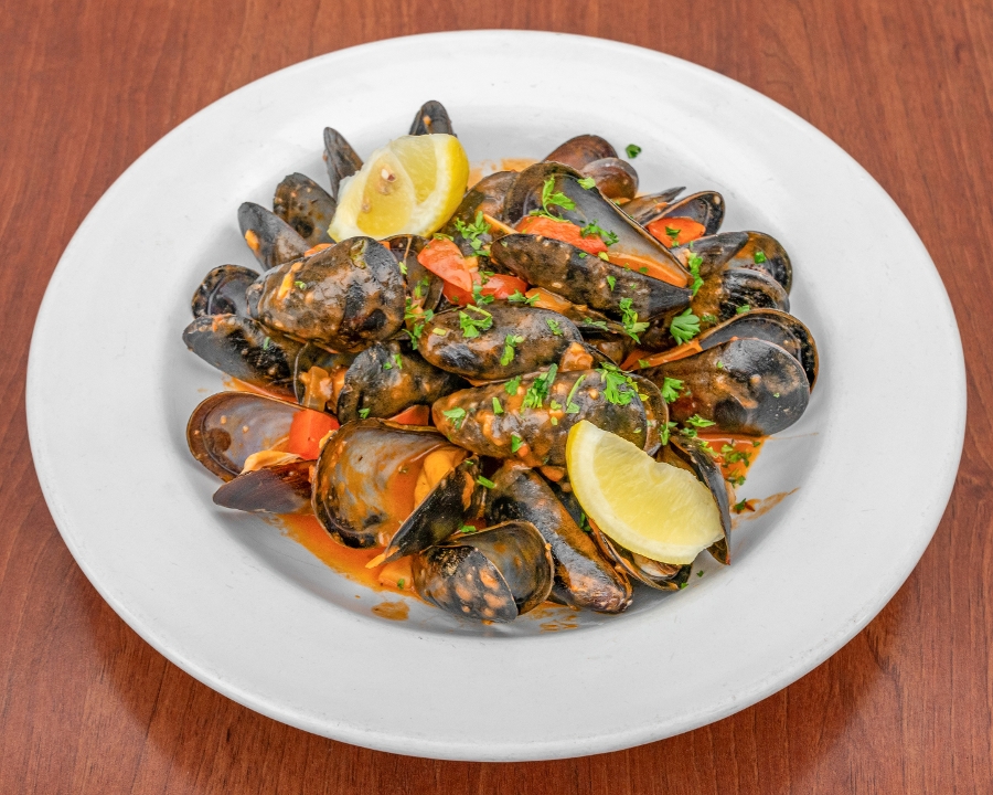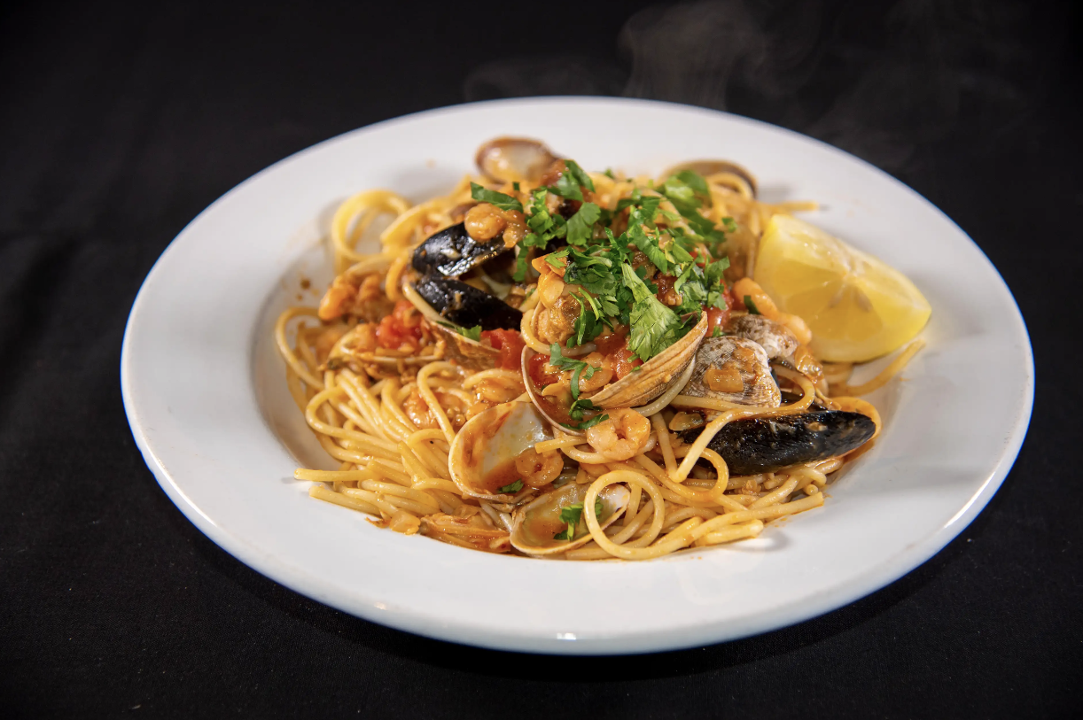 Shell clams, mussels, prawns, shrimp, fish, and baby clams sautéed in white wine marinara sauce with fresh Italian herbs. Served on a bed of spaghetti