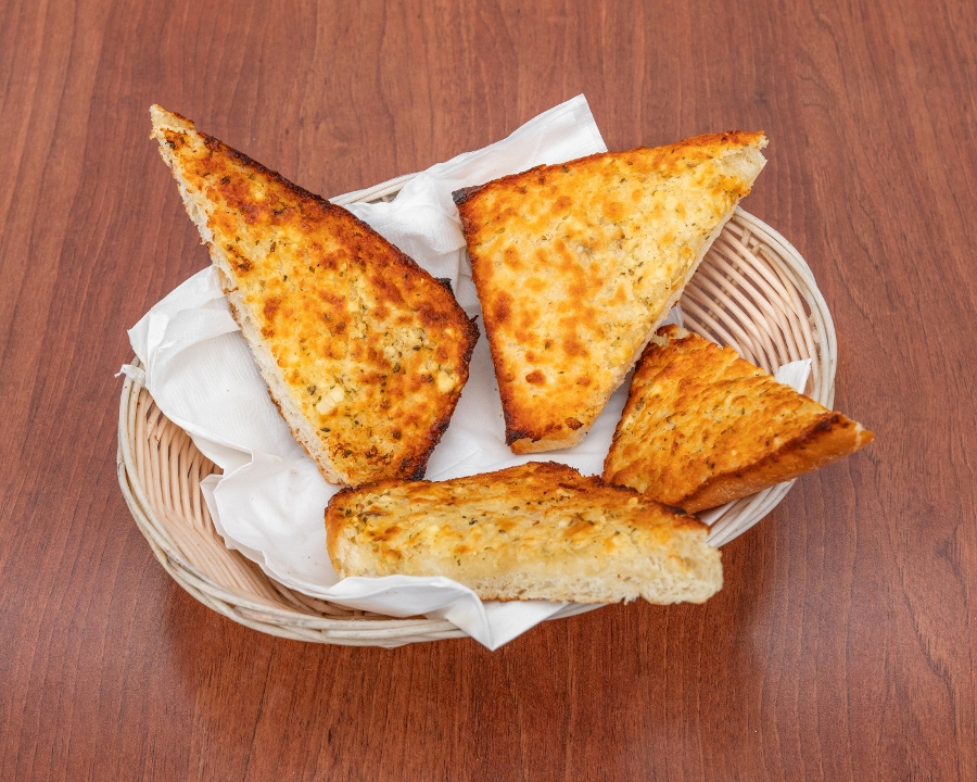 Baked bread, garlic, butter, oregano, and Parmesan cheese