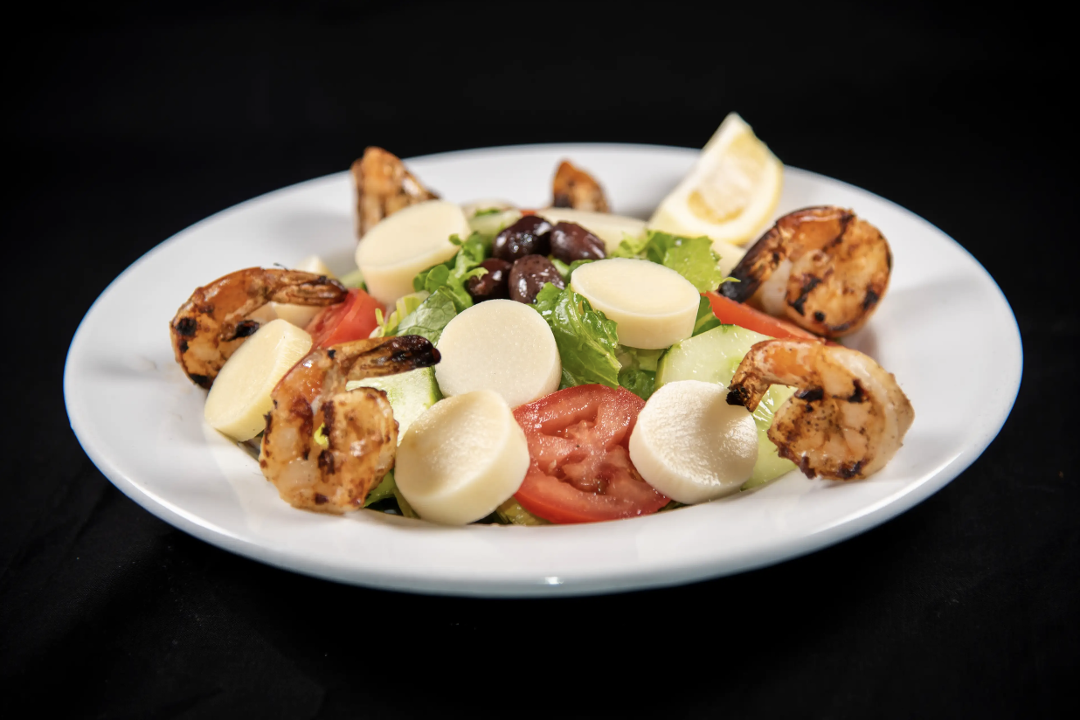 Grilled prawns served with a mixed green salad. Small comes with 3 prawns, large comes with 6 prawns