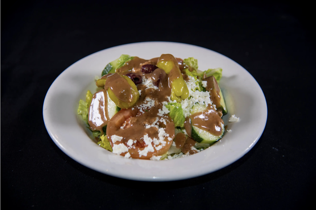 Organic spring mix, tomatoes, cucumber, pepperoncini, feta cheese, and kalamata olives. Served with vinaigrette dressing