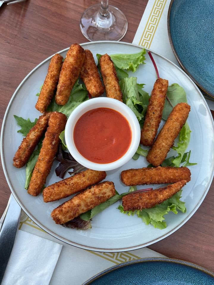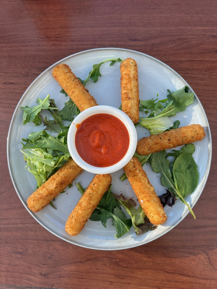 Deep-fried mozzarella sticks served with marinara, ranch, or bleu cheese dressing