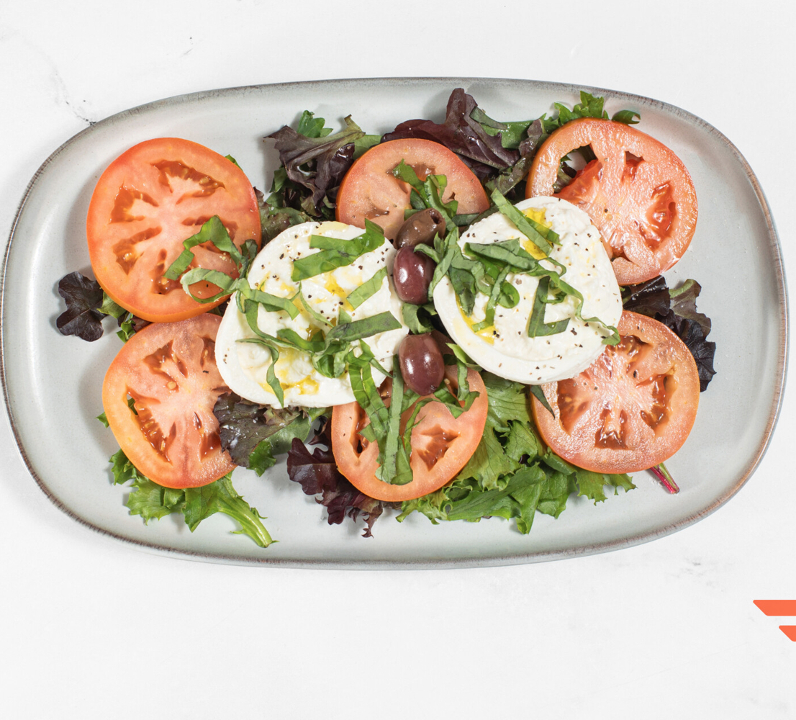 Bed of Spring Mix, Sliced Tomatoes, Fresh Burrata, Extra Virgin Olive Oil, and Sea Salt