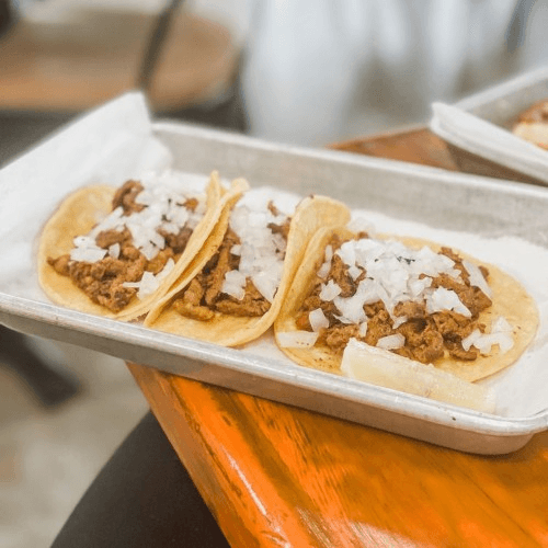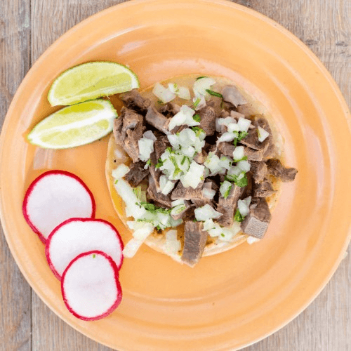 Choice of meat, rice, beans, cheese, pico de gallo or onions and cilantro depending on choice of meat
