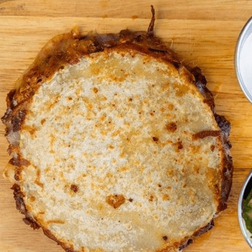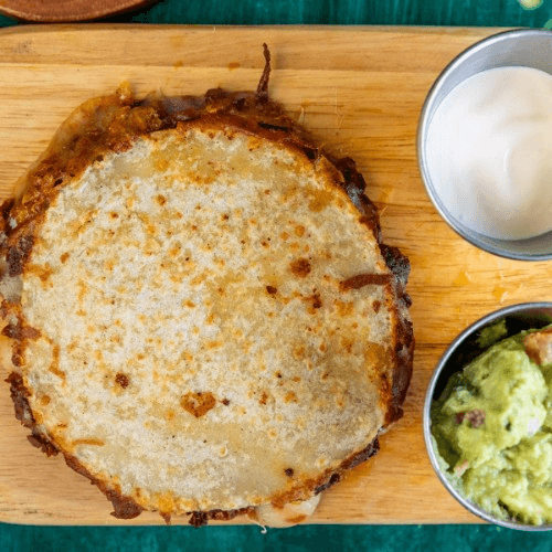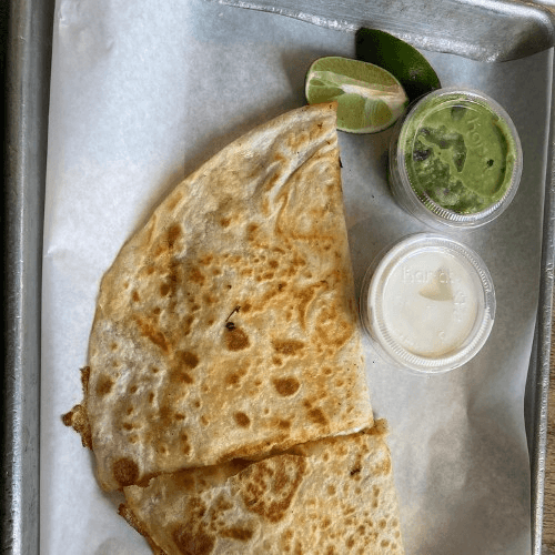 Mini corn quesadilla with cheese, choice of meat, guacamole, pico de gallo