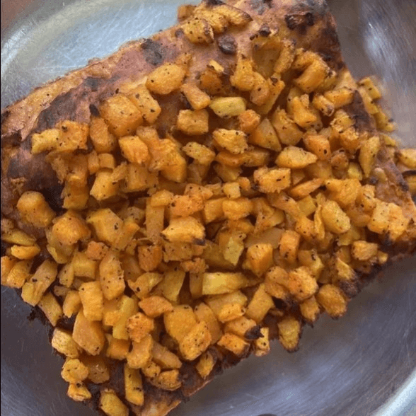 Freshly roasted butternut squash with herbs, in a mildly sweet and tangy tomato sauce.