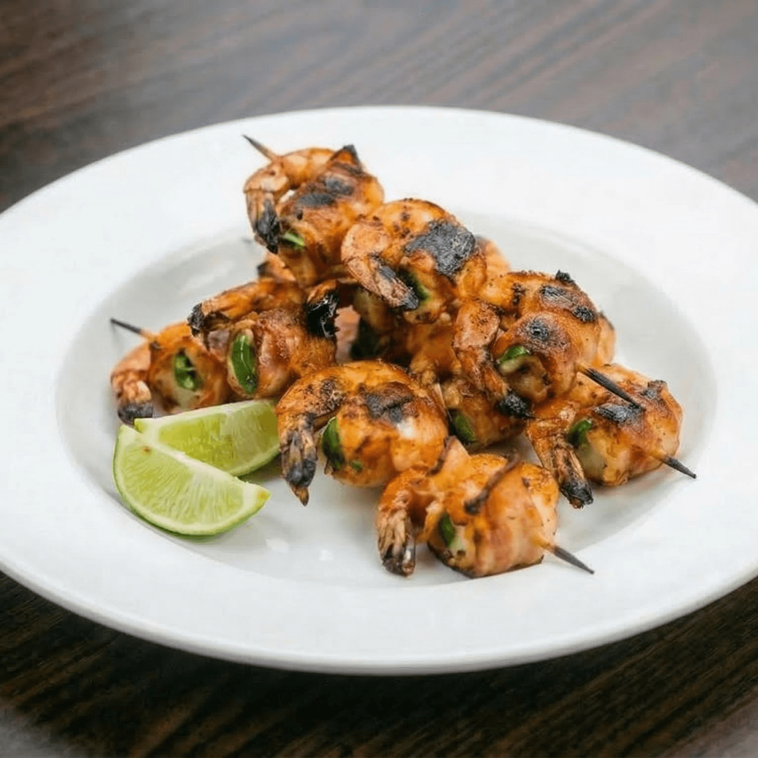 Shrimp wrapped in bacon, stuffed with panela cheese and jalapeño.