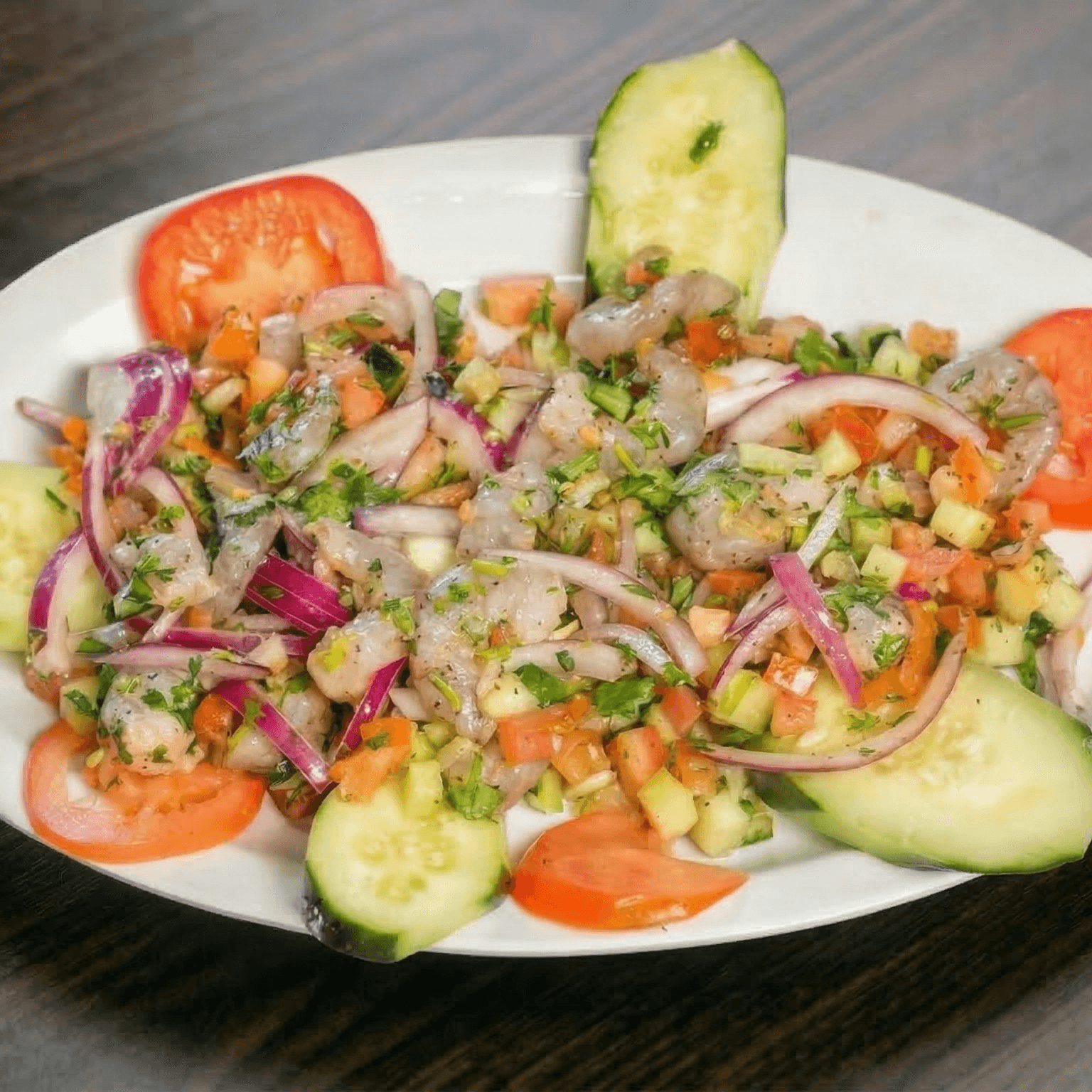 Homemade special sauce, langostino shrimp, clams, mussels, basa fish, baby octopus. Served with white rice and a slice of garlic bread.
