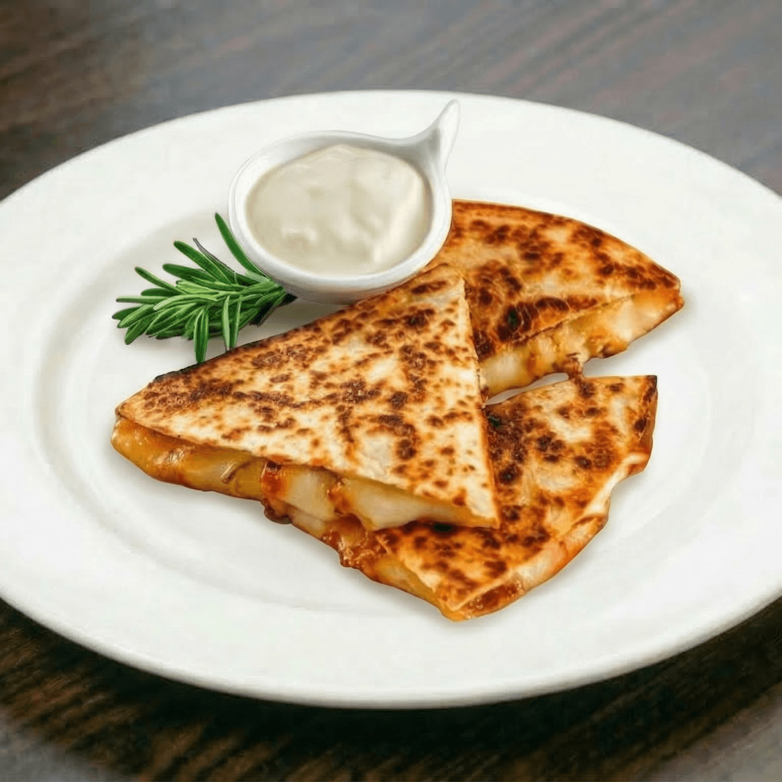 Sautéed veggies, cheese, pico de gallo, sour cream, and guacamole.