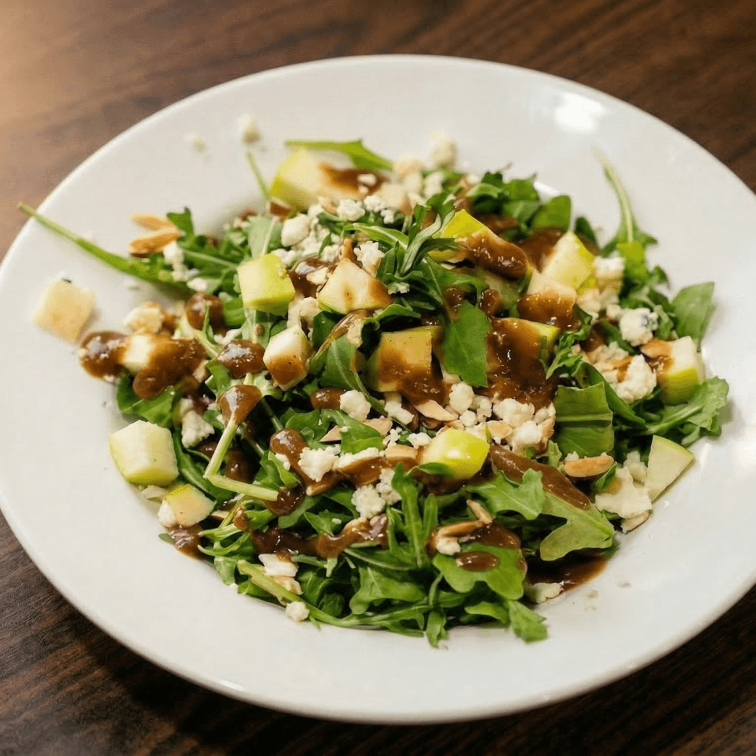 Apple arugula, granny smith apple, feta cheese, roasted almond and balsamic dressing.