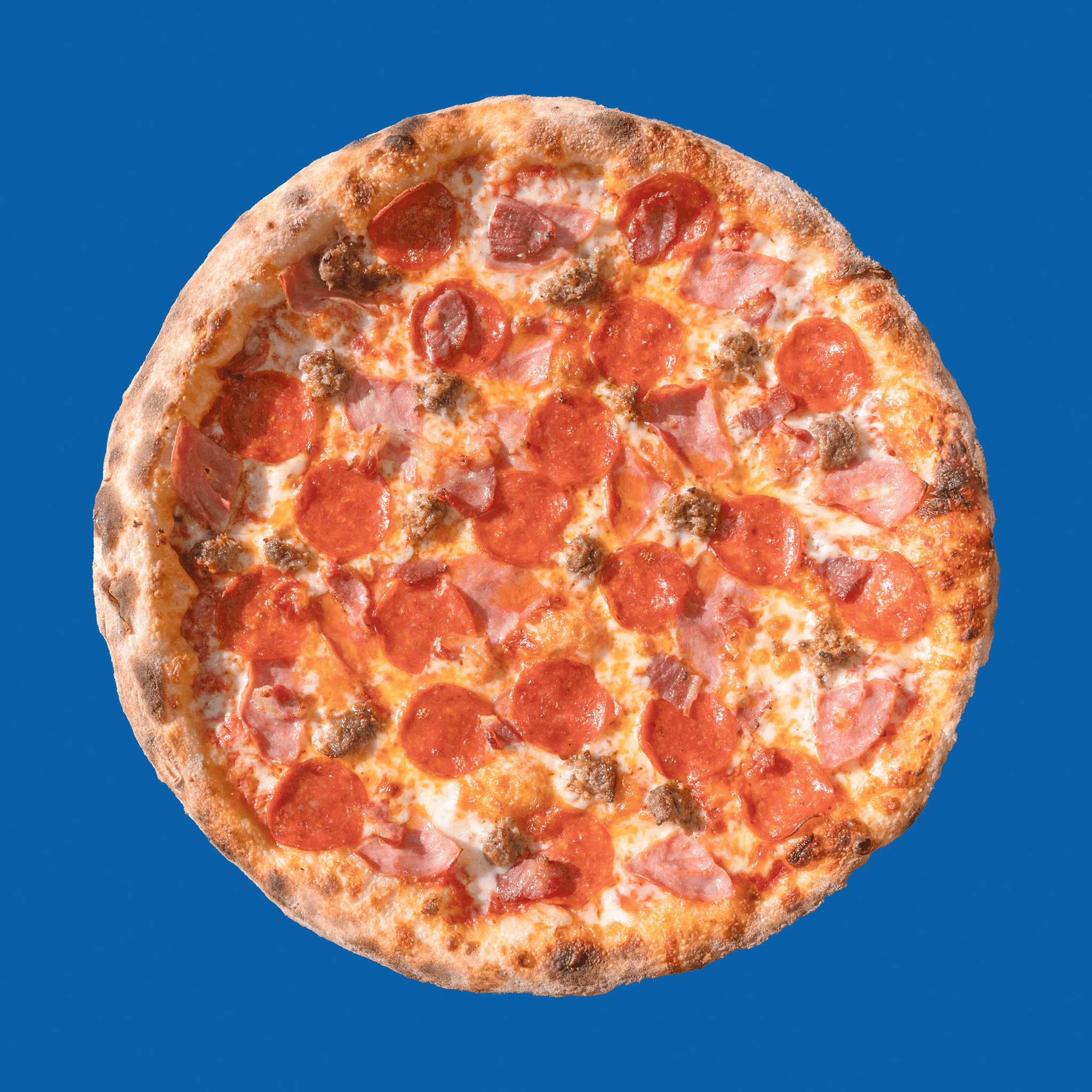 Mozzarella, Tomato Sauce, Pepperoni, Salami, Turkey Ham, Sausage.