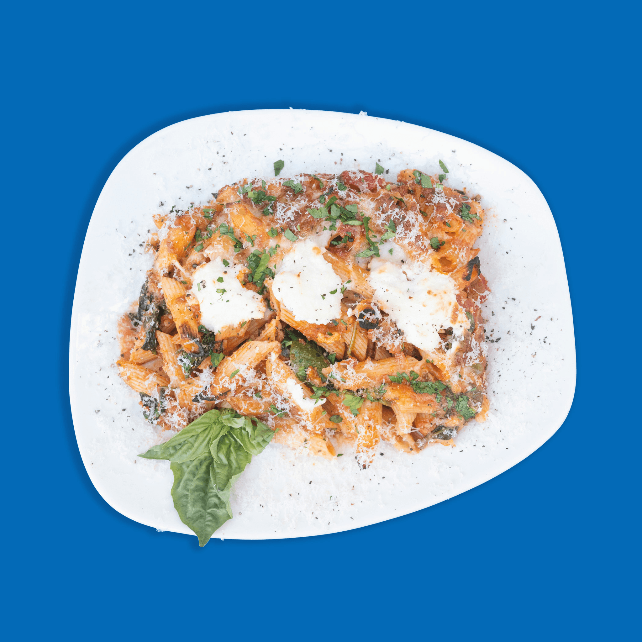 arrabbiata sauce, fresh garlic, kalamata olives, parmesan