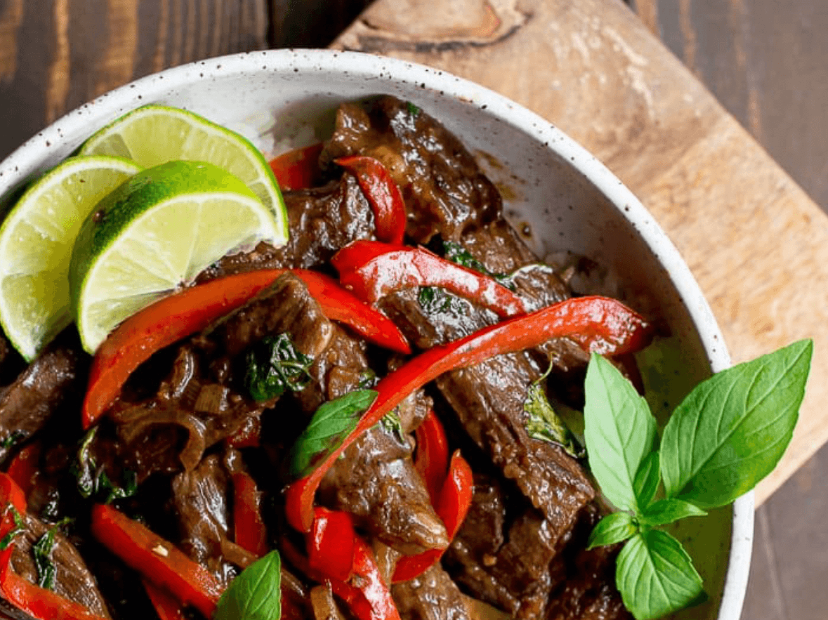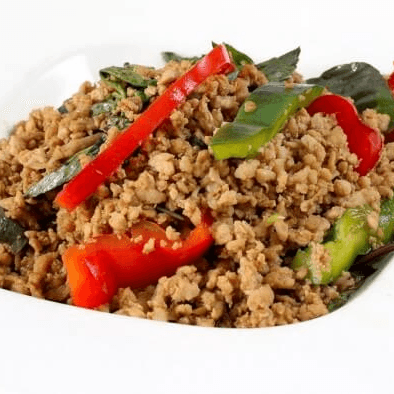 Minced meat or tofu with chili, basil leaves and bell pepper. Vegan option available upon request