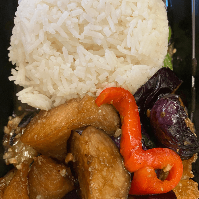 Choice of meat or tofu topped with a rich garlic sauce. Served with mixed vegetables. Vegan option is available upon request